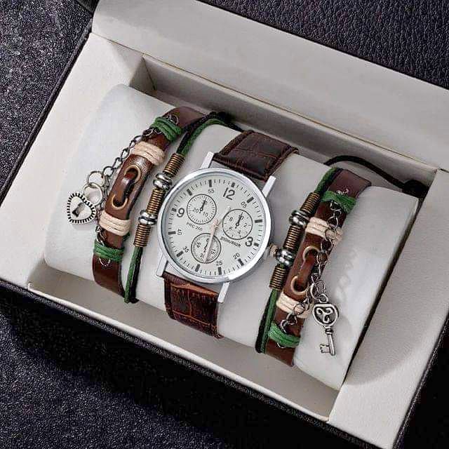 Bracelet Leather Hand Quartz Watch Set
