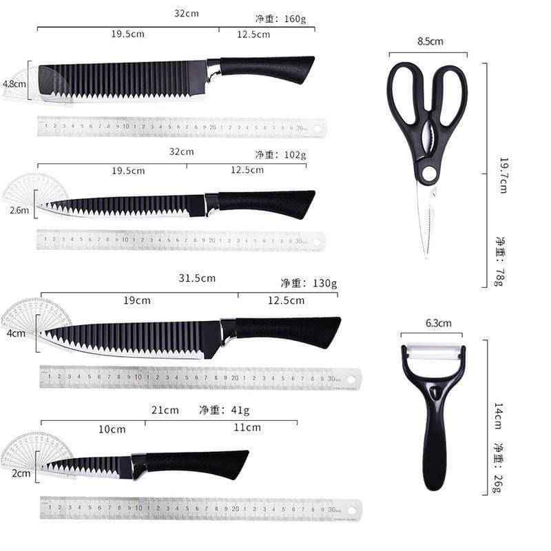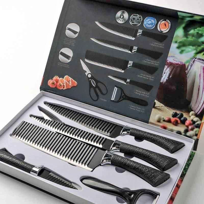 Kitchen Knife Set 6-Piece Set Black Stainless Steel Chef Knife Non Stained Gift Knife Box
