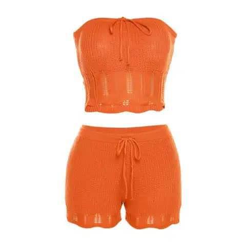 A bikini is a two-piece swimsuit primarily worn by girls and women that features one piece on top that covers the breasts, and a second piece on the bottom: the front covering the pelvis but usually exposing the navel, and the back generally covering the intergluteal cleft and a little
