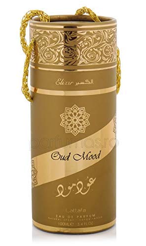Oud Mood Elixir by Lattafa Perfumes is a fragrance for women and men. Top notes are Saffron, Nutmeg and Cinnamon; middle notes are Agarwood (Oud), Suede and Sandalwood; base notes are Amber and Vanilla.