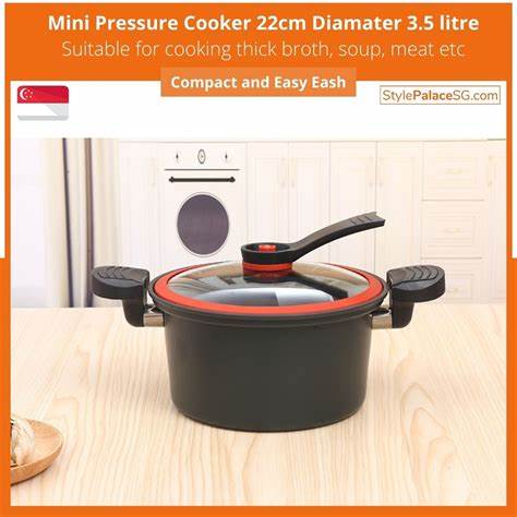A 22CM 3.5L Liter pressure cooking pot with 6 material composite layer. It has a pressure lid that can secure seal the lid to the pot to ensure a high pressure cooking process. The pot handle has sliding lock to secure and lock the pressure lid into place