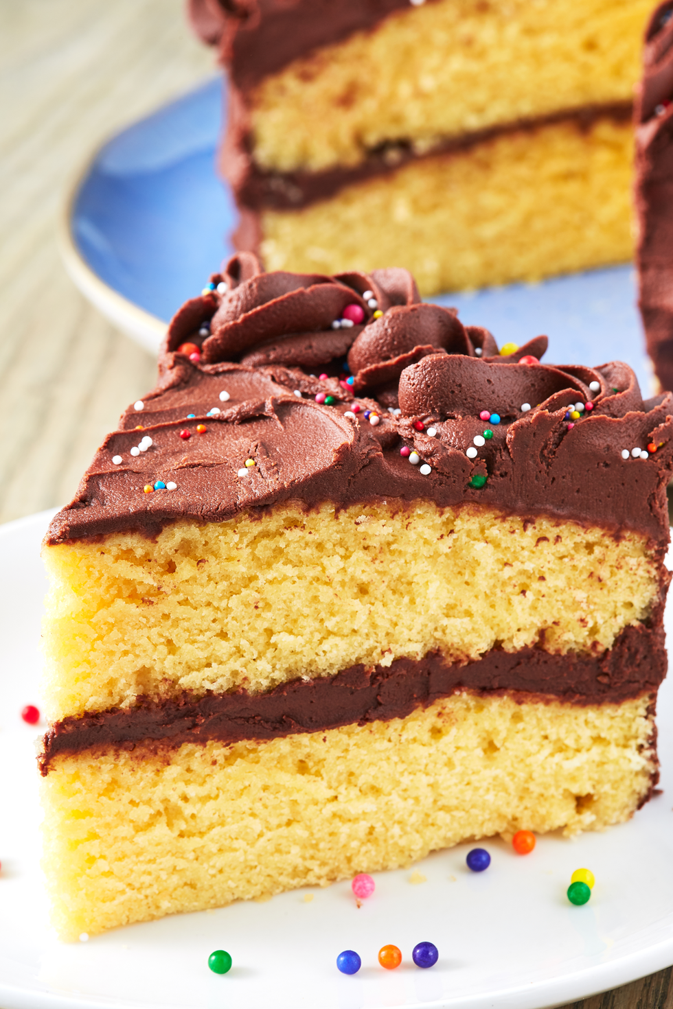 Yellow cake (basically vanilla cake with extra egg yolks) looks particularly sunshine-y, and goes perfectly with fudgy chocolate frosting. Don’t forget to decorate with fun sprinkles!