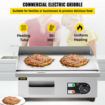 Electric Griddle Flat Top Grill 1500W 14″ Hot Plate BBQ Countertop Commercial